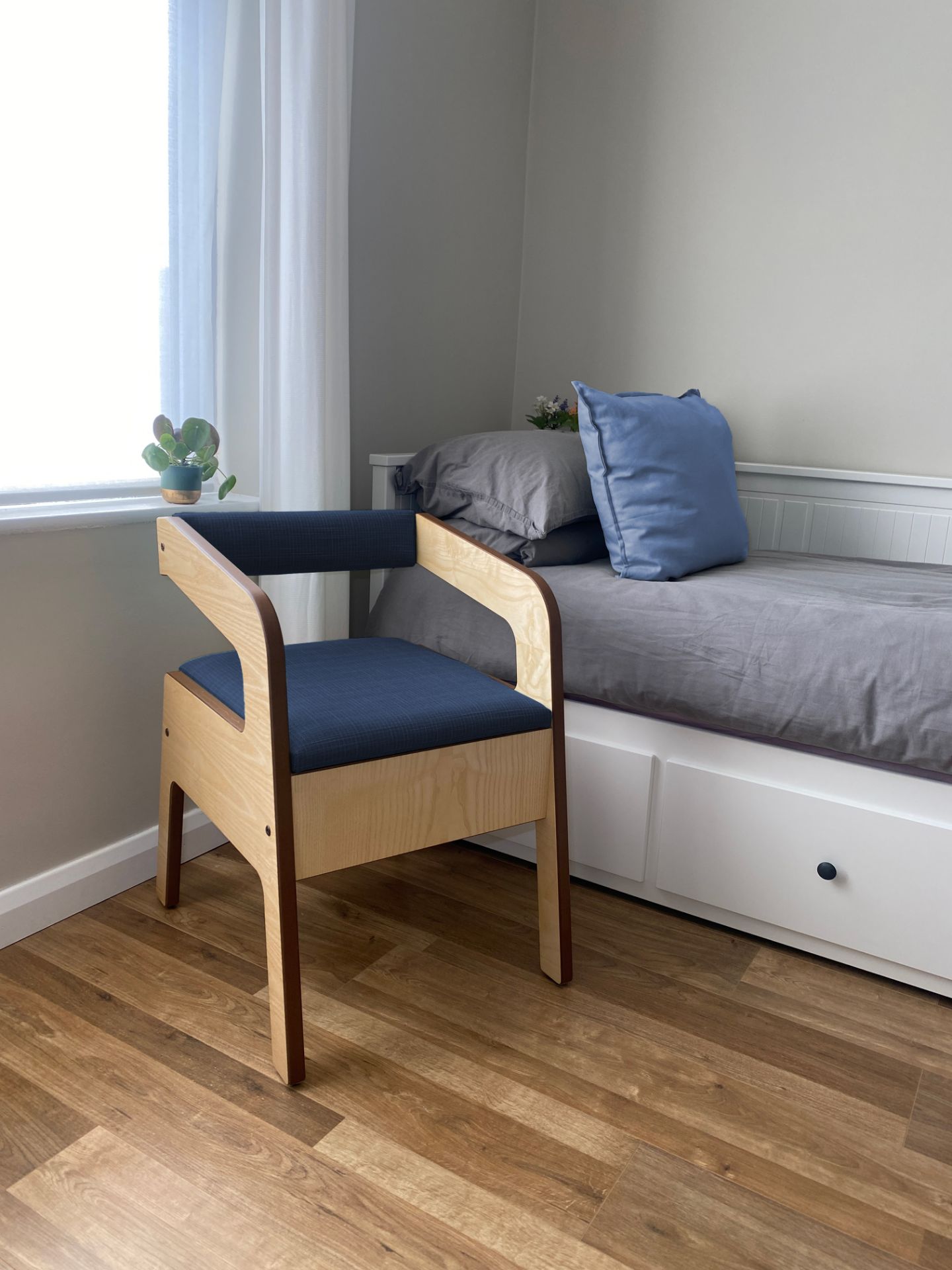 The simple clean lines give an uncluttered appearance.  The padded backrest and solid arms give the user support and stability.